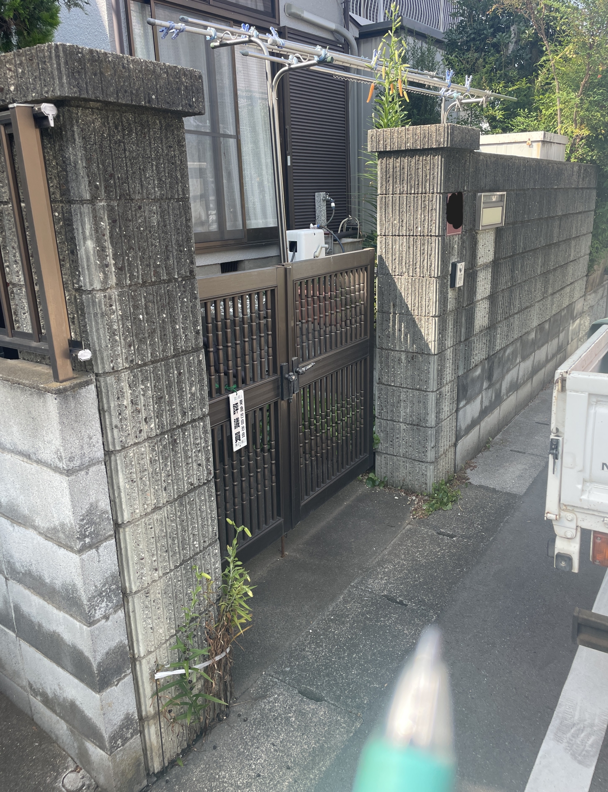 アルミ門扉、門柱、車庫との境にあったブロックの一部を解体して