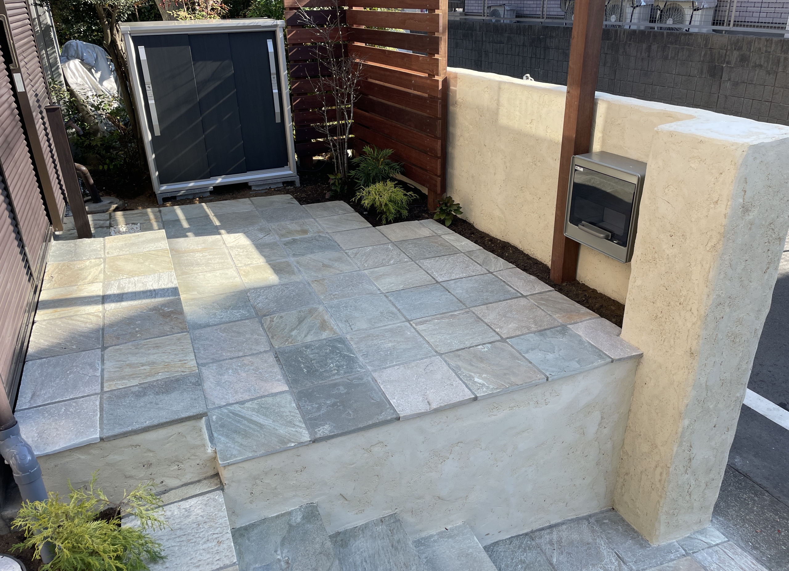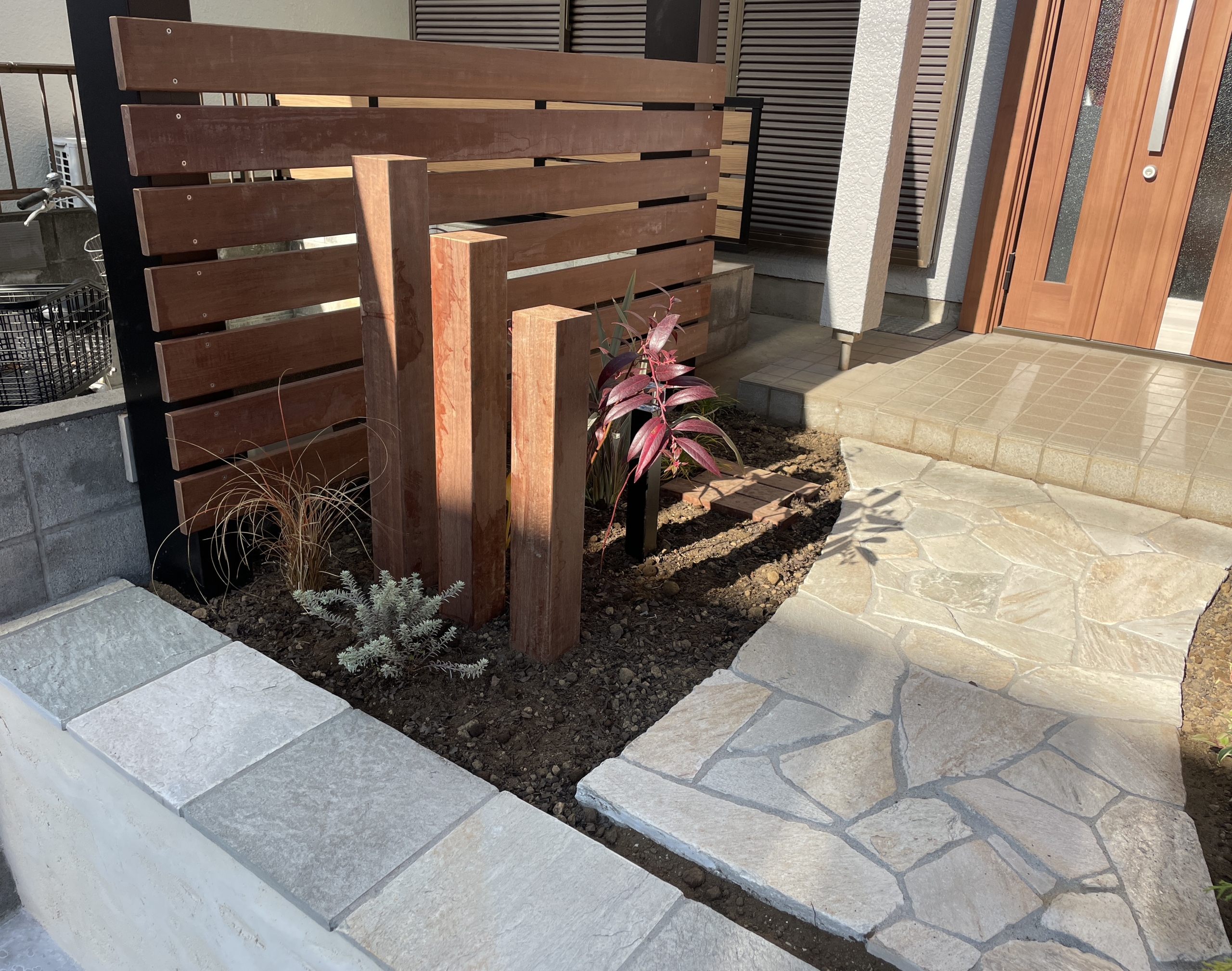 天然石とTKストーンで植物の似合う雰囲気づくり|埼玉県狭山市H様邸にて外構リフォーム工事